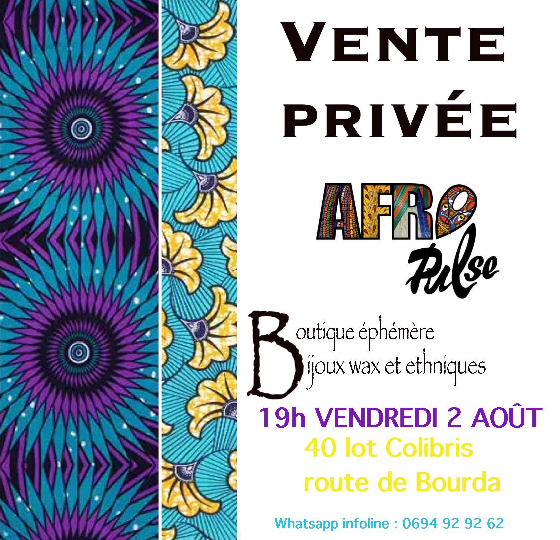 VENTE PRIVEE AFRO PULSE le vendredi 2 Aout à partir de 19h au 40 lot Colibris - Route de Bourda ➡️ boutique éphémère - Bijoux wax et ethniques